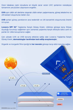 LOVECRA GÜNEŞ KREMİ SPF 50+ Yüksek UVA/UVB Koruma Yağsız Yaşlanma ve Leke Karşıtı Yüz Kremi 50ml