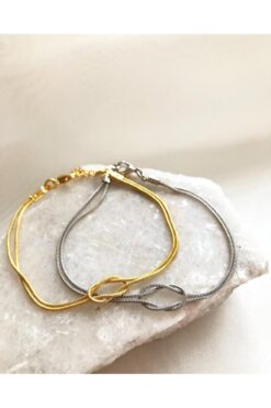 DEMOKAN Kadın Bileklik Asansör Model Dorika Taş İki Renk Örgü Ayarlanabilir Bileklik