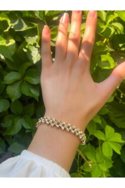 KOBA Kadın Altın Kaplama Üzeri Su Yolu Zirkon Taşlı Bileklik