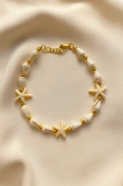 monalisatoka Kadın Deniz Kabuğu Yıldızlı Gold Boncuk Detaylı Bileklik