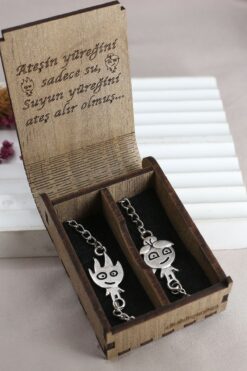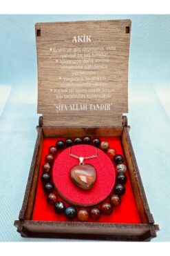 grs oyuncak Ahşap Kutudu Akık Kırmızı-siyah Model Akik Taşı Kolye Bileklik Seti