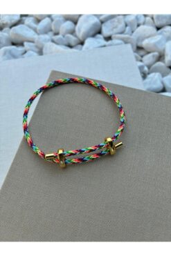 Hedef Bijuteri Renkli Ayarlanabilir Çelik Detaylı Örme İp Bileklik