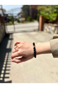 lewibafashion YUVARLAK ÇELİK İŞLEMELİ SİYAH BİLEKLİK