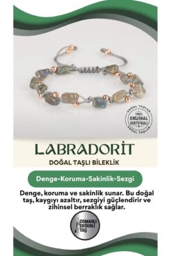 OSMANLI DOĞAL TAŞ Kaygı Giderme Bilekliği Labradorit Doğal Taşlı Natürel Kesim