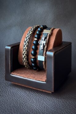 Onouqo Erkek Deri Ve Doğaltaş Kombin Bileklik Seti – 3 Adet