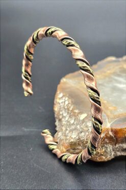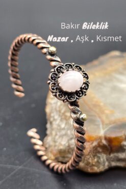 NBS Beautiful Naturel Stones Bakır Bileklik ( Saf ) Ayarlanabilir Pembe Kuvars Antik Benzersiz Tasarım Burma ( Nazar )