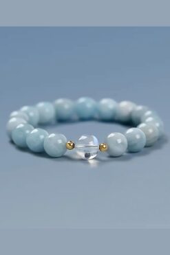 NBS Beautiful Naturel Stones Mavi Huzur Akuamarin, Kristal Kuvars Unisex Şık Tasarım Doğal Taş Bileklik 8 mm