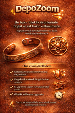 depozoom Bakır Bileklik – Şık ve Ayarlanabir Tasarım – Günlük Kullanıma Uygun Unisex Bileklik