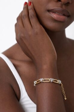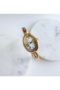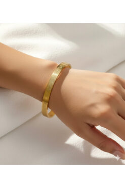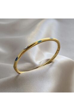 DEMOKAN Kadın Çelik Bileklik Yüksek Kalite Elips Mineli Detay Kararmaz Kelepçe Bileklik