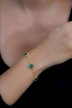 Argentum Concept 14k Altın Kaplamalı 925 Ayar Gümüş Granada Saray Yoncası Bileklik – Yeşil 45103000