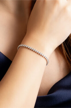 Söğütlü Silver Gümüş Beyaz Altın Rodajlı Pırlanta Modeli Zirkon Taşlı Su Yolu Bieklik