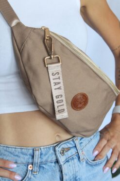 Milky Way Design Stay Gold Kanvas Kumaş Ayarlanabilir Askılı Kahverengi Bel Ve Omuz Çantası, 2 Bölmeli – Anahtarlıklı
