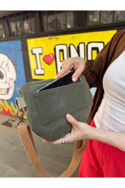 Atelier Lapina Haki (Ekru detaylı) / Doğa Astar Mumlu Kanvas Çapraz Çanta / Bel Çantası