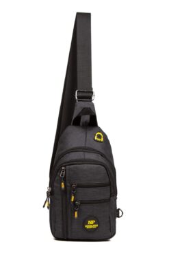 NEWISH POLO ACCESSORIES Unisex Keten Kumaş Siyah Su Geçirmez Kulaklık Usb Çıkışlı Bel Ve Çapraz Omuz Çanta Göğüs Seyahat