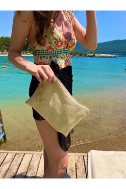 Home Mof Home Collection Hasır Görünümlü Püsküllü Clutch Çanta