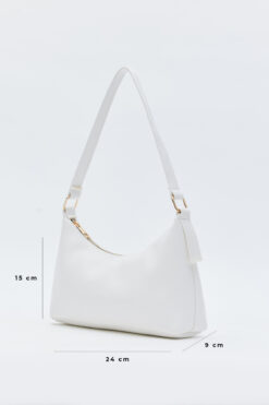 Shanta Beyaz D05 Fermuarlı Suni Deri Günlük Kadın El ve Omuz Baget Çantası U:15 E:24 G:9