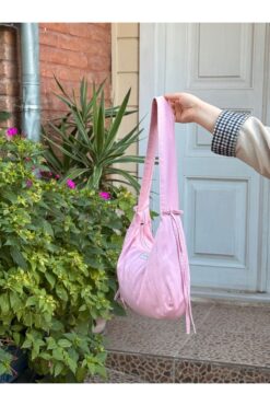 RONASBAG Bow Bag Pembe Kadın Astarlı Içi Gözlü Fiyonk Detaylı Fermuarlı Baget Kol Çantası