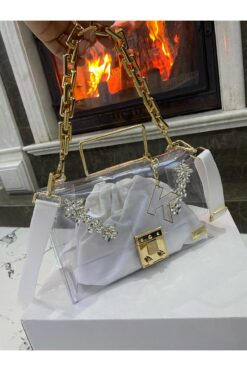 AREV BAGS Zincir Askılı Siyah Taşlı Şeffaf El Ve Omuz Çanta