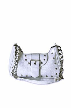 FASOLDY Bony Zımbalı Timsah Desenli Beyaz Kol Çantası
