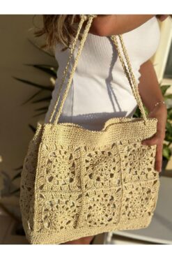 sisa.art Aksesuarlı Kanvas Kumaş Çanta Omuz ve Plaj Çantası