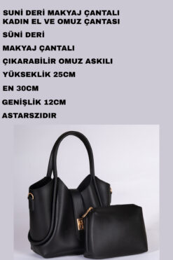 macsoo Kadın Siyah Kilit Detaylı 2’li Set El Omuz çantası ve Makyaj çantası