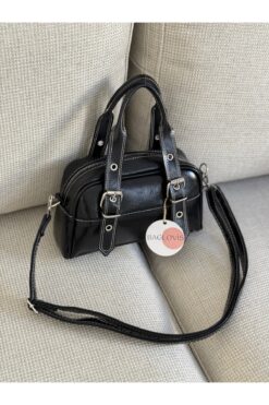 BAGLOVİS ASKILARI AYARLANABİLİR TOKA DETAYLI SİYAH KADIN OMUZ ÇANTASI En25 Boy15