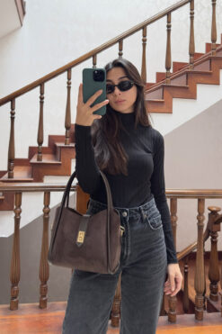 SHAKA Kırışık Dokulu Siyah Shk184 Suni Deri ,Fermuarlı Tek Bölmeli ,Askılı El, Kol ve Omuz Çantası