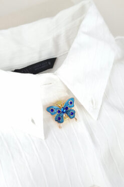Norevia 4 Al 3 Öde Mavi Mineli Kelebek Model Lüks Yaka ve Kol Düğmesi Kapağı ve Broşu (1 adet)