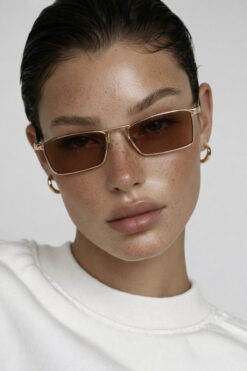 Angel Eyes Small Kare Gold-Altın Çerçeve Kahverengi Cam Minimal Güneş Gözlüğü Yüksek Kalite CE Belgesi