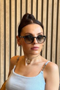 MACERATİ Clubmaster Siyah Oval Unisex Klasik Model Güneş Gözlüğü