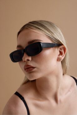 TomyHelf Siyah Slim Rectangle Kadın Güneş Gözlüğü UV400 Korumalı Düz Çerçeve Tasarım