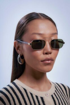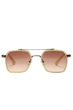 Chunky Frame Gold Metal Çerçeveli Beşgen Unisex Güneş Gözlüğü