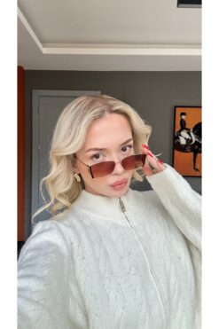 Angel Eyes Small Kare Gold-Altın Çerçeve Kahverengi Cam Minimal Güneş Gözlüğü Yüksek Kalite CE Belgesi