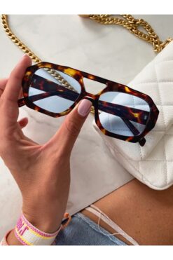 funeyes Valeno Turkuaz camlı Kemik Leopar Desen saplı Premium Dikdörtgen Unisex Güneş Gözlüğü