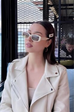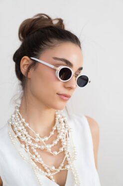 Stil Noktası Beyaz Gold Çerçeve Siyah Cam Kadın Güneş Gözlüğü
