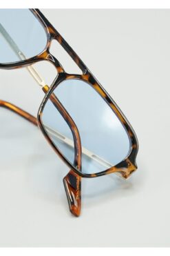 Eyesofia Bild Unisex Vintage Mavi Cam Turuncu Çerçeve Güneş Gözlüğü