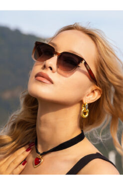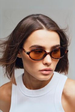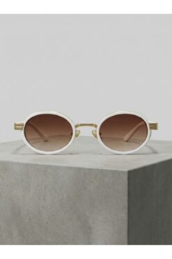 funeyes Max Elips Oval Beyaz Çerçeve Kahverengi Cam Güneş Gözlüğü Unisex Metal Trend Gözlük