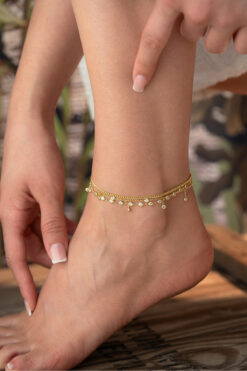 HALHALMILL Mavi Boncuklu Gold Renkli Yunus Sallantılı Halhal
