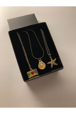 PURE BERRY 3LÜ İSTİRİDYE-DENİZ YILDIZI-MEKTUP SET GOLD RENK KARARMAZ SOLMAZ PASLANMAZ