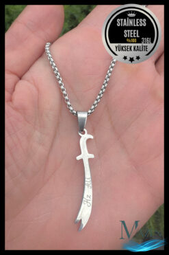 MAZEN Çelik Zülfikar Kılıcı Kolye | 316L Çelik | Hz. Ali Kılıcı Tasarım | Erkek, Kadın Kolye | Kararmaz
