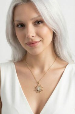 özgül takı ve tasarım Güneş Ay ve Yıldız Model Zirkon Taşlı Paslanmaz Çelik Gold Renk Kadın Kolye