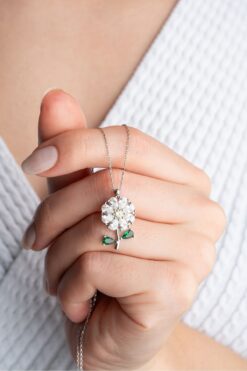 Silvano Jewelry 925 Ayar Gümüş Işıklı Kutuda Dönen Papatya Kolye