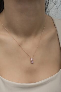 Nereze 925 Ayar Gümüş Pembe Taşlı Kedi Kolye