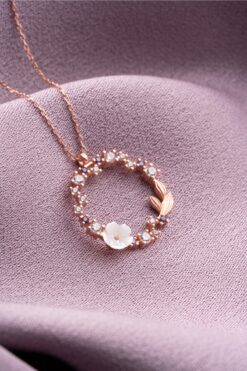 Nereze 925 Ayar Gümüş Manolya Çiçeği Işıltılı Daire Model Kolye