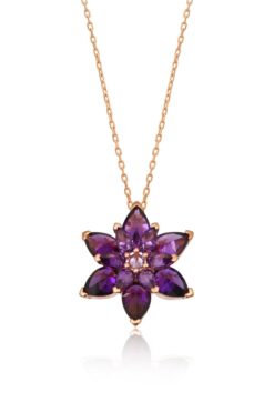 Zanaatsilver 925 Ayar Gümüş Zincirli Ametist Taşlı Rose Kaplama Lotus Kamelya Çiçeği Kolye