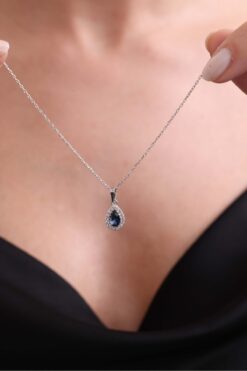 jingle bells Damla Safir Renkli Zirkon Kolye 925 Ayar Gümüş Rodyum