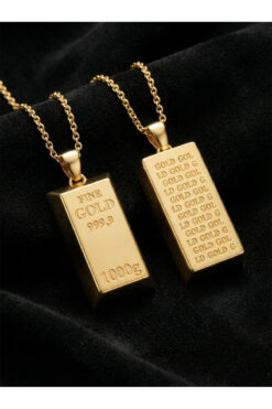 Roza Silver 925 Ayar Gümüş Gold Renk Minyatür Altın Külçe Modelli Tasarım Gümüş Kolye