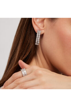 Siya Silver Özel Seri Zirkon Taşlı Dorika Topçuklu Çelik Küpe - Hediye Kutulu
