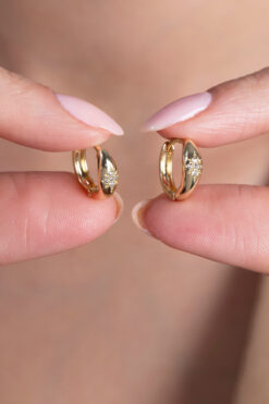 Sacce Scarves&Accessories Yıldız Model Mini Tektaş Küpe – 14K Gold Rodyum Kaplama Zirkon Küpe (Çelik)