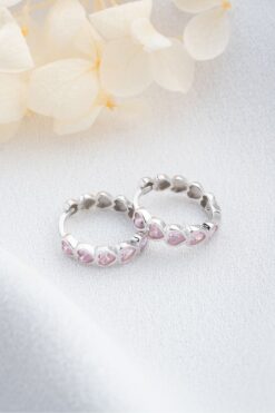 Silvano Jewelry 925 Ayar Gümüş Pembe Kalpli Halka Küpe